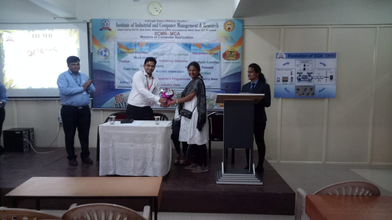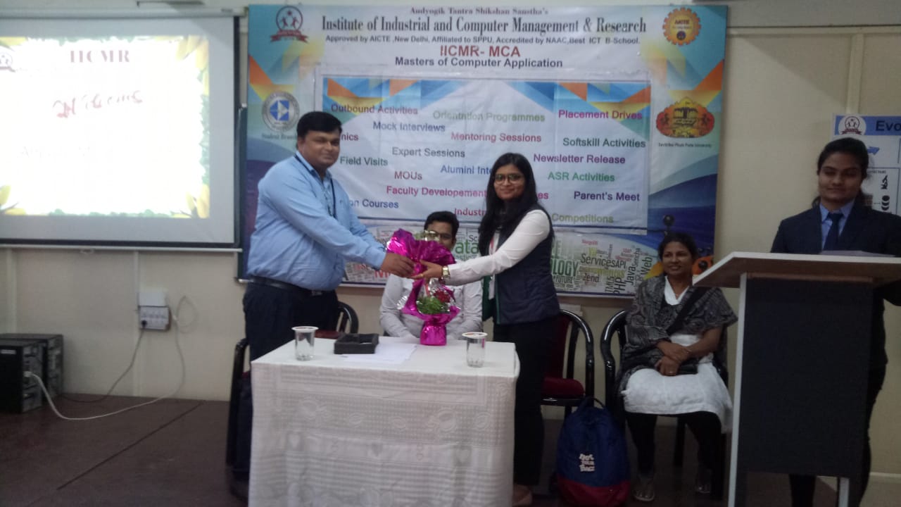 Mrs.Renu Mathew,HOD MCA IICMR was felicitated Mr.Rajeev Parekh ,Business Analyst ,Angular Minds Pvt. Ltd.