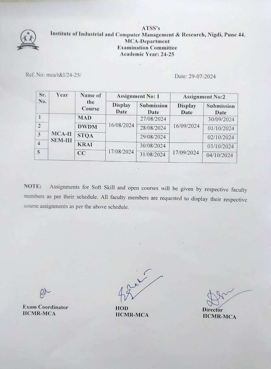 | Note: For assessment schedule refer Examination Calendar | ||