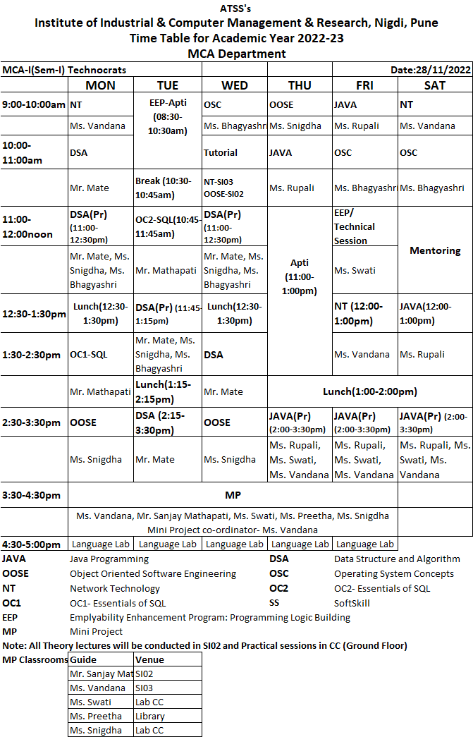 Semester Time Table